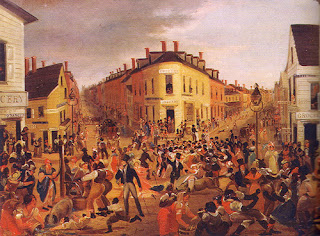 | Five Points in 1827, some of the women in this painting probably worked in John\’s houses |