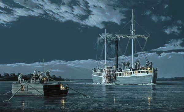 They departed Louisville in late November to make their way over the Falls and after stopping to resupply into the Mississippi River. It was hoped that the Mississippi River would be relatively easy to cruise down. Andrew Jack had experience on the river and knew the channel well.