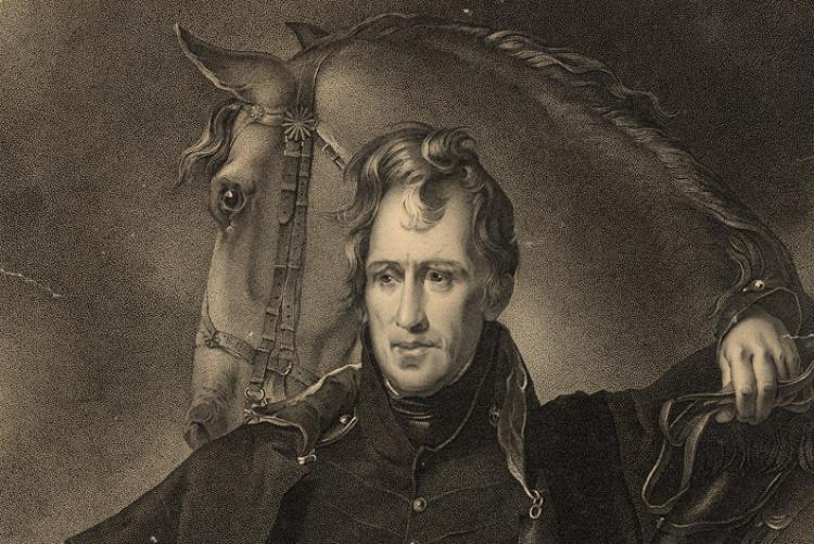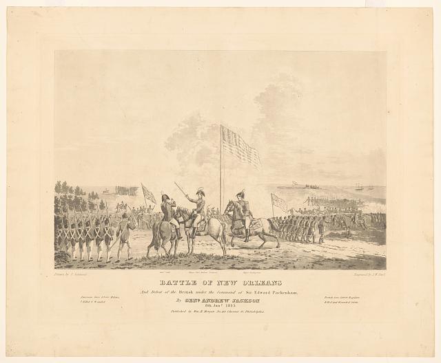 | Major Livingston is depicted to the right of General Jackson under the flag. |
